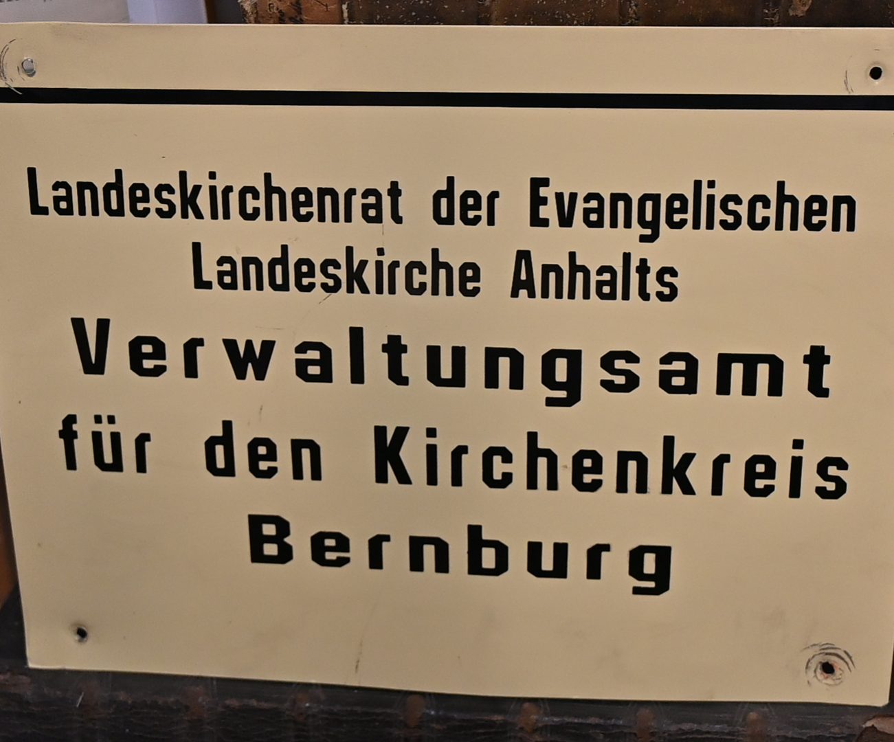 Historisches Hinweischild, das heute im Archiv der Landeskirche lagert.
