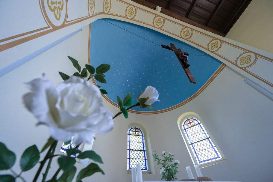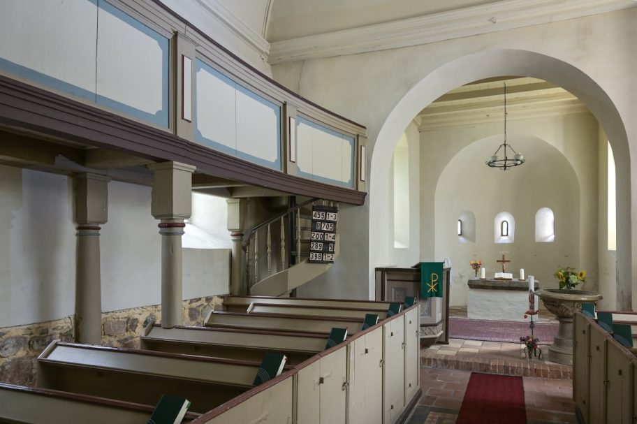 Wie wirken Kirchen auf ihre Besucherinnen und Besucher? Das lässt sich meist nicht in wenigen Worten fassen. Bei St. Marien in Grochewitz dürfte das anders sein. Hier sind “hell” und “freundlich” die passenden Begriffe. Dieser Eindruck entsteht aufgrund der lichtdurchfluteten Apsis und mit dem blauen Himmel voller Sterne.