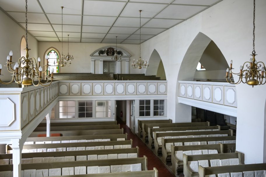 Die Backsteinkirche besticht durch ihren hellen freundlichen Innenraum.
