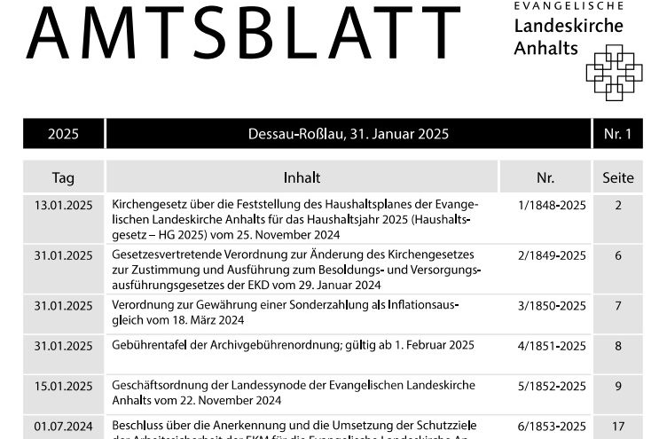 Im Amtsblatt informiert die Landeskirche über Änderungen bei Verordnungen, Regelungen und Gesetzen. Auch wichtige Personalia werden im Amtsblatt veröffentlicht.