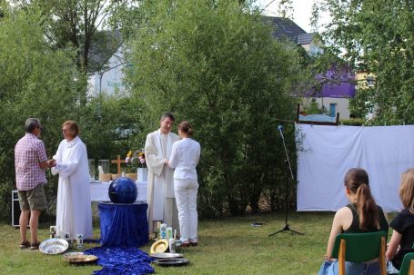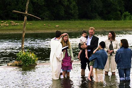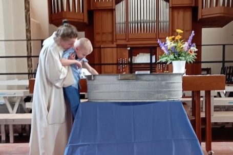 Die Taufe ist die festliche Aufnahme eines Menschen in die christliche Gemeinde. Im Taufgottesdienst gießt dabei die Pfarrerin oder der Pfarrer einige Tropfen Wasser über den Kopf des Täuflings.