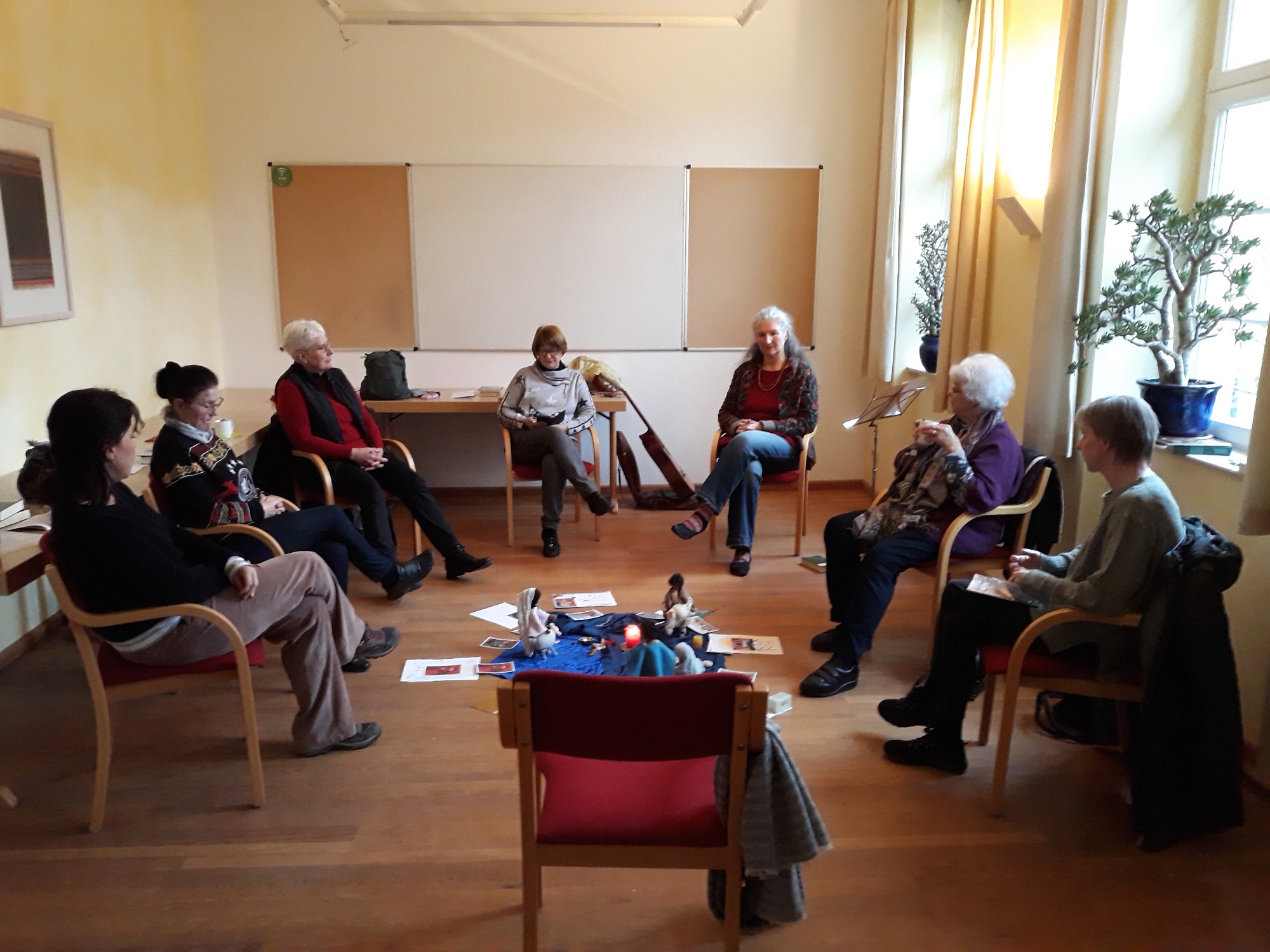 Wir spürten in diesen Tagen den Engeln, den Boten Gottes, nach. Wir betrachteten biblische Erzählungen, tauschten uns aus, teilten Stille und Gebet, sangen und musizierten, unternahmen einen Spaziergang und genossen gemeinsame Mahlzeiten, kreatives Gestalten und Gemeinschaft. "Wir wurden uns gegenseitig zu Engeln", so wurde es von einer Teilnehmerin gesagt. Gott sei Dank.