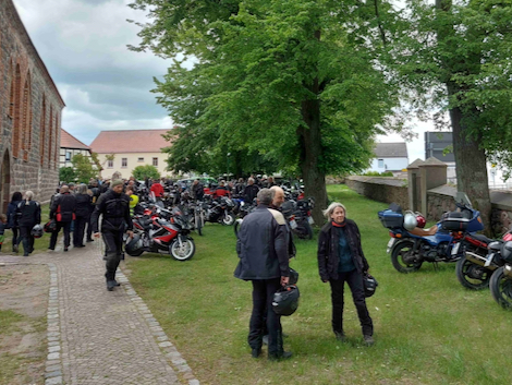 Eine kleine Gruppe Bernburger fuhr wieder in die Uckermark zum mittlerweile 36. Motorradtreffen in Sternhagen. Dort waren etwa 100 Motorradfahrer und -fahrerinnen zusammen. Freitagabend spielte eine Zweimannband echt gut, dann Mitternachtsandacht in der Kirche.