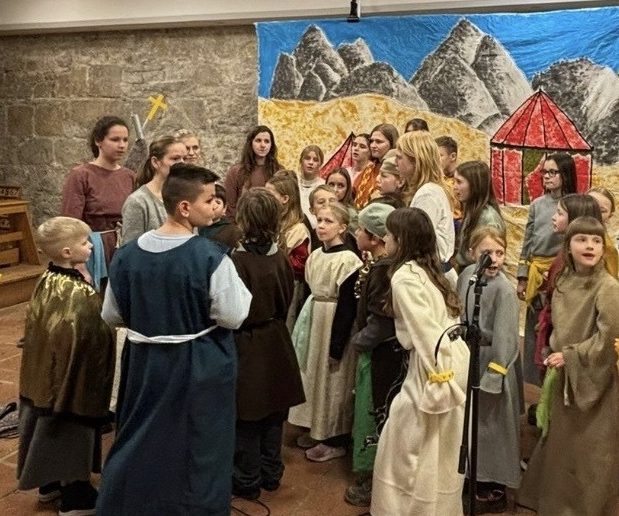 In jedem Jahr findet in den Februarferien eine Singfreizeit für Kinder ab der 1. Klasse statt. Von Dienstag bis Sonntag sind wir mit etwa 40 Kindern zusammen und erarbeiten ein umfangreiches Singspiel bzw. Musical, das dann zwei Mal aufgeführt wird, einmal im Stiftssaal Gernrode und ein zweites Mal im schönen Schlosstheater Ballenstedt. Dabei geht es nicht nur um das Singen, sondern es gibt immer auch eine szenisch Darstellung mit selbstgestaltetem Bühnenbild, gebastelten Kulissen, Kostümen und allem, was dazu gehört. Kinder schlüpfen in die Rollen meist biblischer Erzählungen und Geschichten und bringen sie auf die Bühne. Ein unglaublich schönes Erlebnis. Neben den Proben gibt es auch einen Nachmittagsausflug, einen Faschingsabend und viel Spaß nebenher.